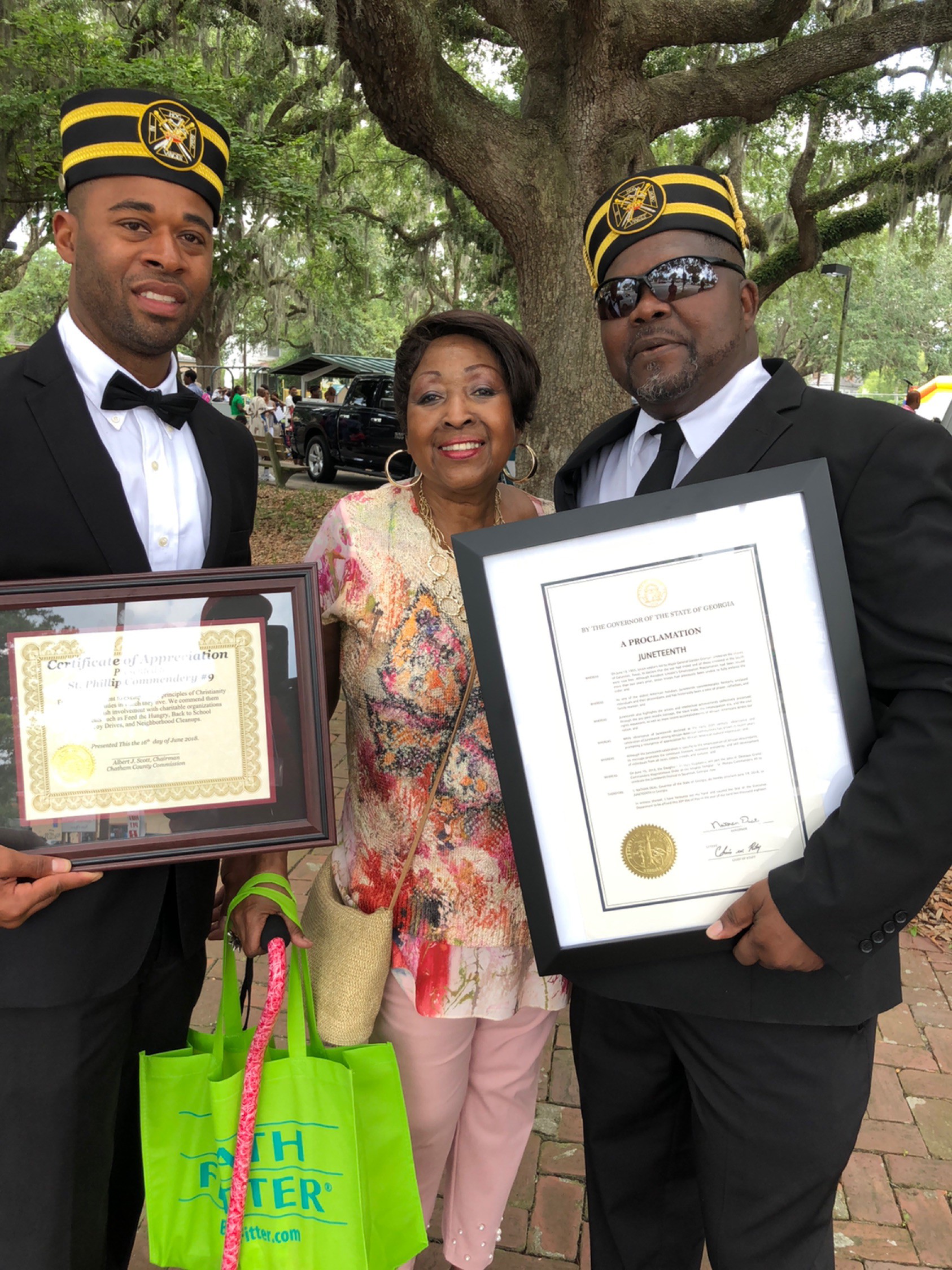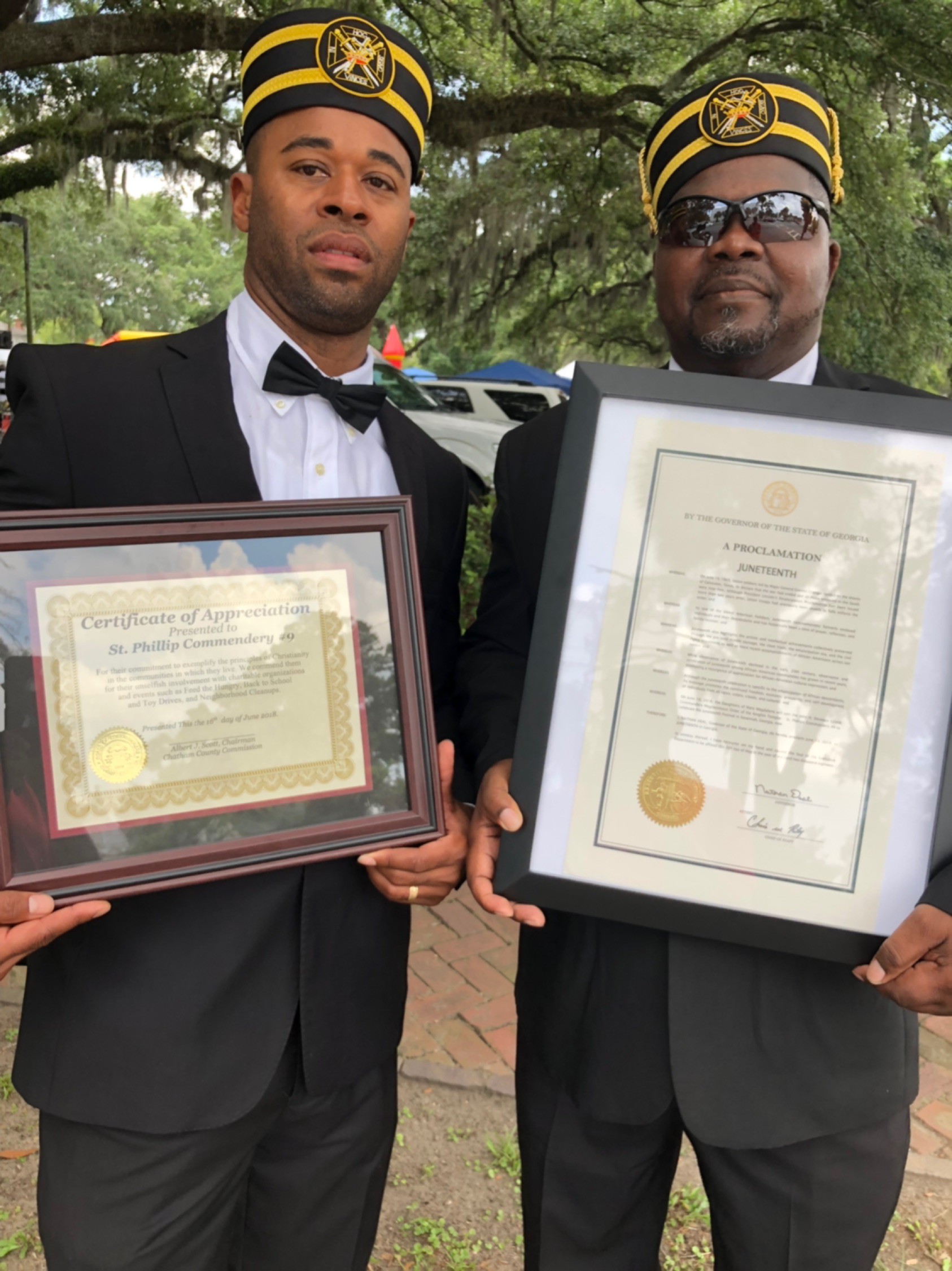 St. Phillip Commandery #9 being honored with resolutions by the city of Savannah and Juneteenth Celebration Committee. The Commandery participates annually in this celebration of African American Heritage by escorting dignitaries and honorees as well as providing other charitable services throughout the event.